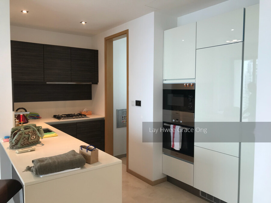 The apartment boasts of branded white goods including Miele oven & microwave (never used), refrigerator and gas stove, newly replaced Miele washing machine and Miele Dryer. All appliances are in like-new͛ condition. The bedrooms are fitted with Luxaflex blinds, and the bay windows in both the bedrooms are fitted with custom made quality marble tops all make for a beautiful feature. The living room is also fitted with a crisp white custom made bookcase/storage unit providing a large amount of storage. The room is finished with an large mirror from SPACE.