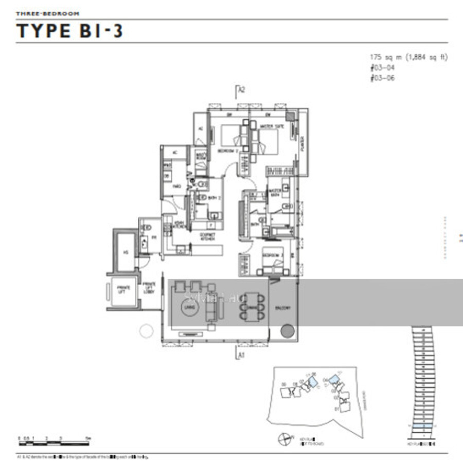3bedrooms : 1,884sqft to 2,207sqft (84 units)