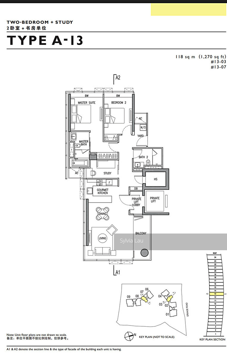 2+1 study : 1,184sqft to 1,292sqft (42 units)