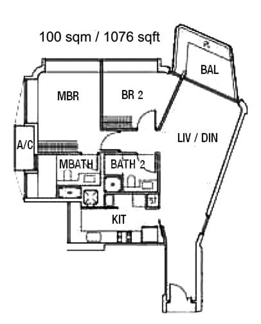 ✔ 1076 sqft with 2 bedrooms and balcony