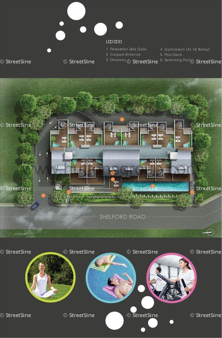 Facilities at 10 Shelford include Gymnasium, Swimming Pool and Pool Deck.