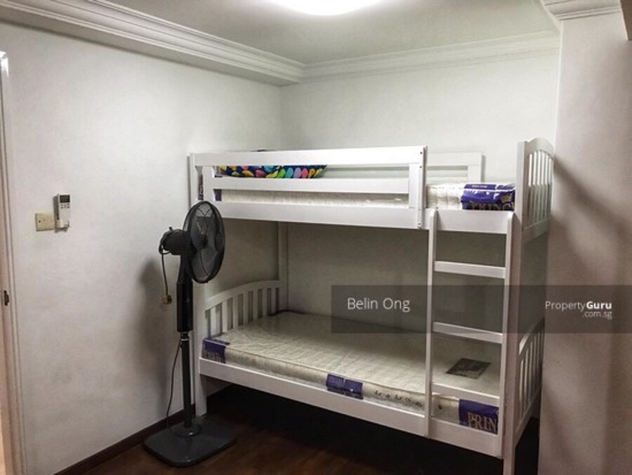 -Fully furnished with a Queen Size bed frame + mattress in the master bedroom and double decker bed frame with mattress each in the other two rooms.