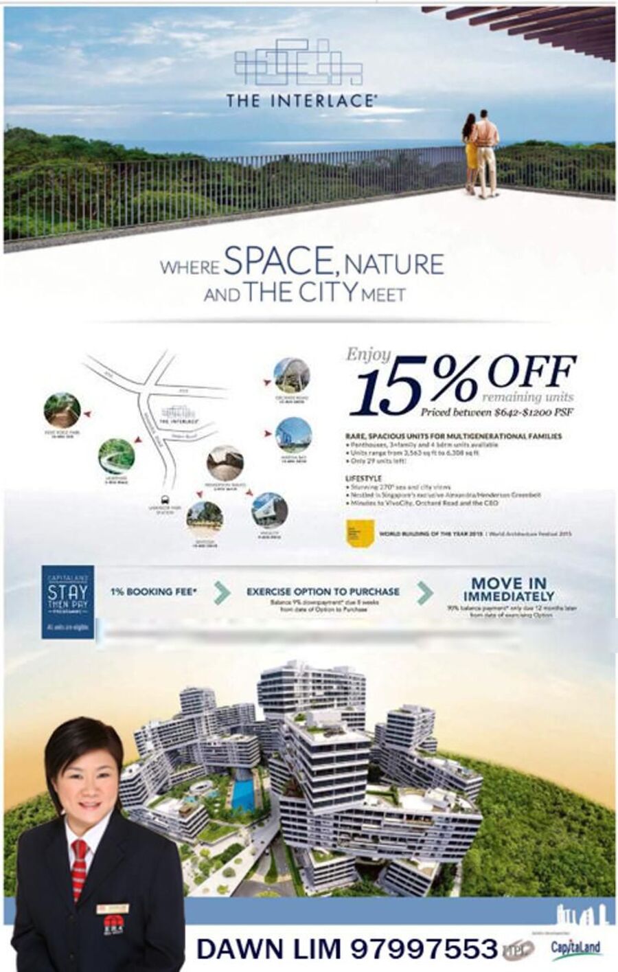 Call Dawn Lim the Developer's appointed salesperson who knows interlace for your well deserved services details and information. Contact ***** for viewings at your conveniences!