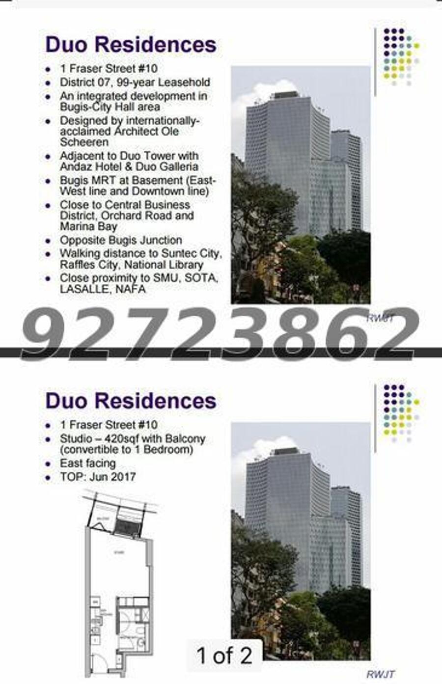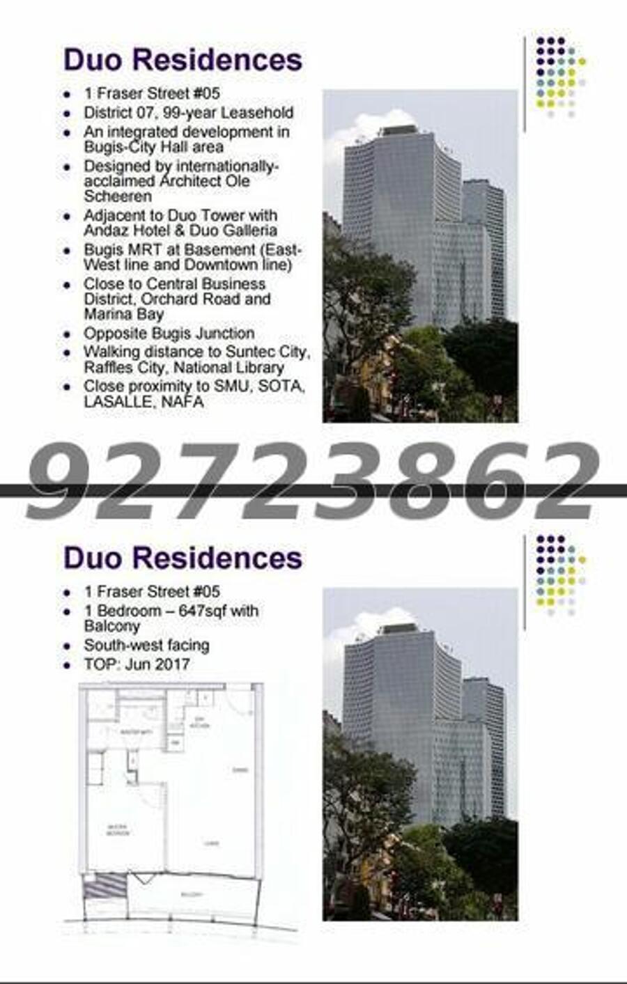 What’s App/Contact Now for Viewing: ***** Ms. Quincy 宋憶秀 for Studio/1BR DUO Residences at Bugis MRT