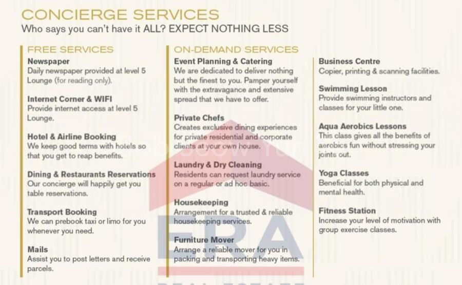 -Various free services from daily newspaper at lounge, hotel & airline booking, dining & restaurant/transport reservation, mails