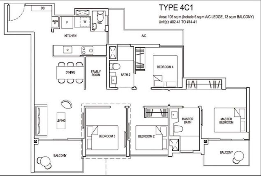➤4 bedroom classic: 1, 130 sf