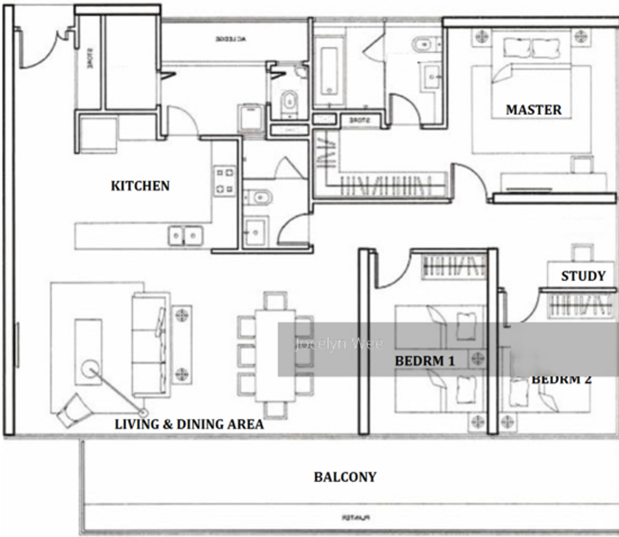 Rooms : 3 bedrms + 1 Study + 1 Household Shelter
