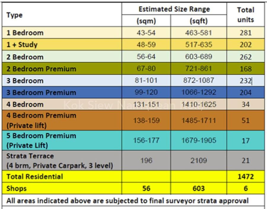 9 Blocks of 17 Storey with 21 Strata landed facing pool.