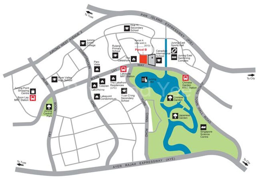 Fronting Jurong Lake, the land parcel is located within an established residential area. Existing condominium developments nearby include Lakepoint, Lake Holmz, Caspian, Parc Vista, The Lakeshore and the upcoming Lakeville. With Lakeside MRT Station just a few minutes’ walk away, residents will enjoy convenient access to all parts of the island.