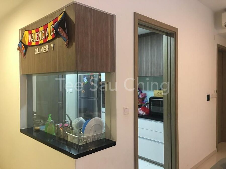 • Modern kitchen with glass partition, able to interact with family member while doing work in kitchen
