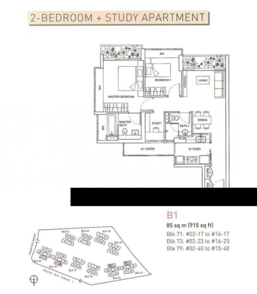 Livia, 91 Pasir Ris Grove, 915 sq ft, 2+study, high floor, totally unblock view facing landed property side.