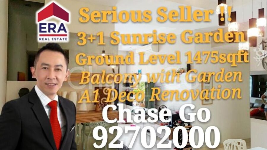 New Listing! Cheap! Cheap! Cheap!! For sale 3+1 Sunrise Garden condo at Yio Chu Kang. 1200sf+275sf patio. Ground floor with Balcony & garden. Fully renovated & newly renovated kitchen. Serene & peaceful environment. Full condominium facilities.