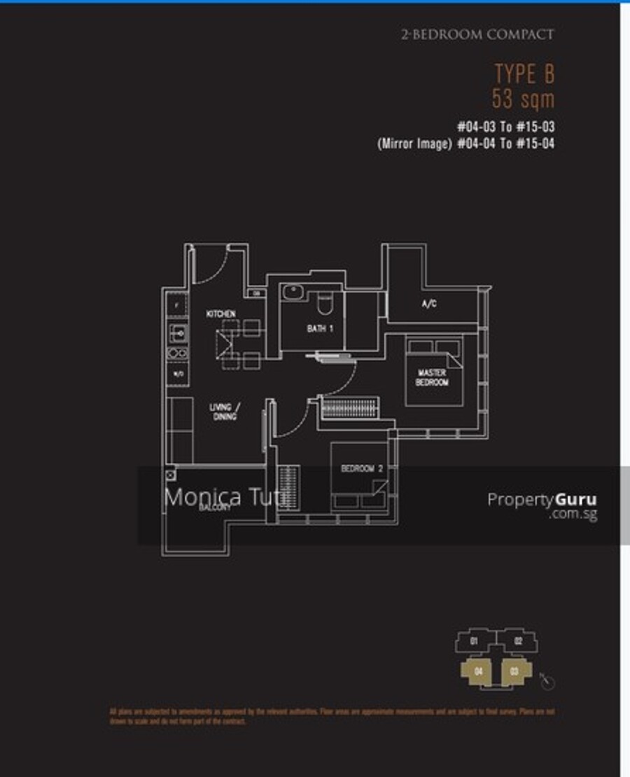 2 Bdrm compact 570sf - from $3081 psf (24 units)