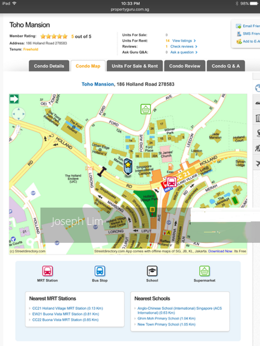 * It is located next to Holland Village, and Holland Village MRT.